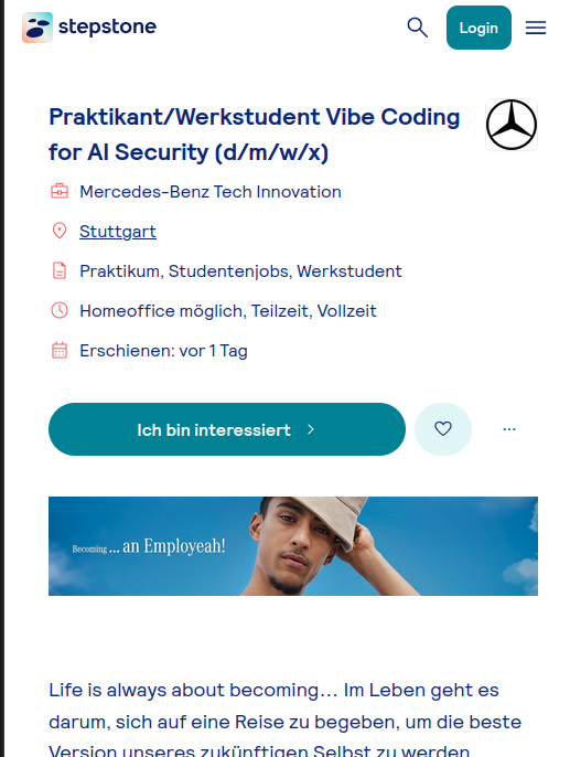 Praktikant/Werkstudent Vibe Coding for AI Security: Als Praktikant/Werkstudent Vibe Coding for AI Security (d/m/w/x) unterstützt du uns bei der Entwicklung schneller Software-Prototypen und interner Tools mithilfe modernster AI-Coding-Technologien.