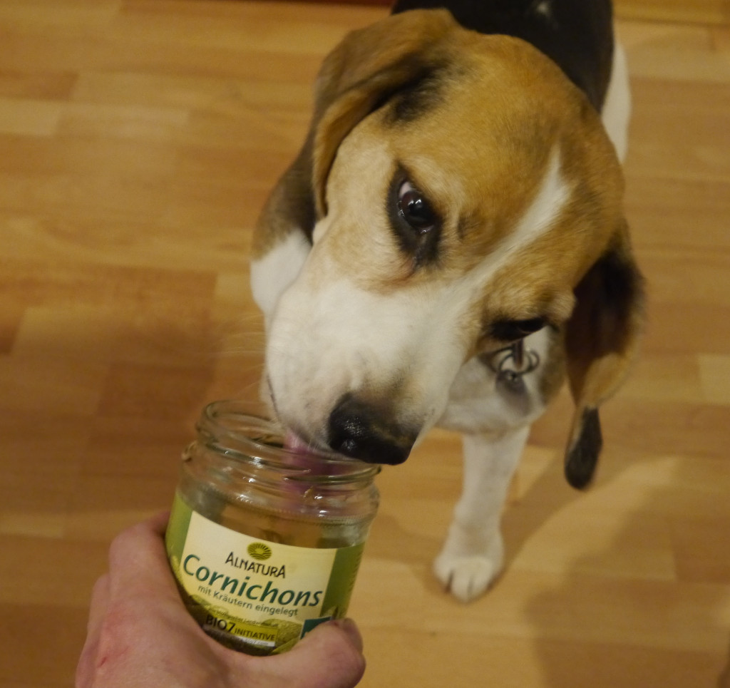 Also das einzige was unser Beagle bisher nicht zu sich nimmt sind Salatblätter. Sonst alles. Wirklich alles, sogar Gurkenwasser