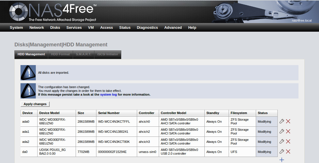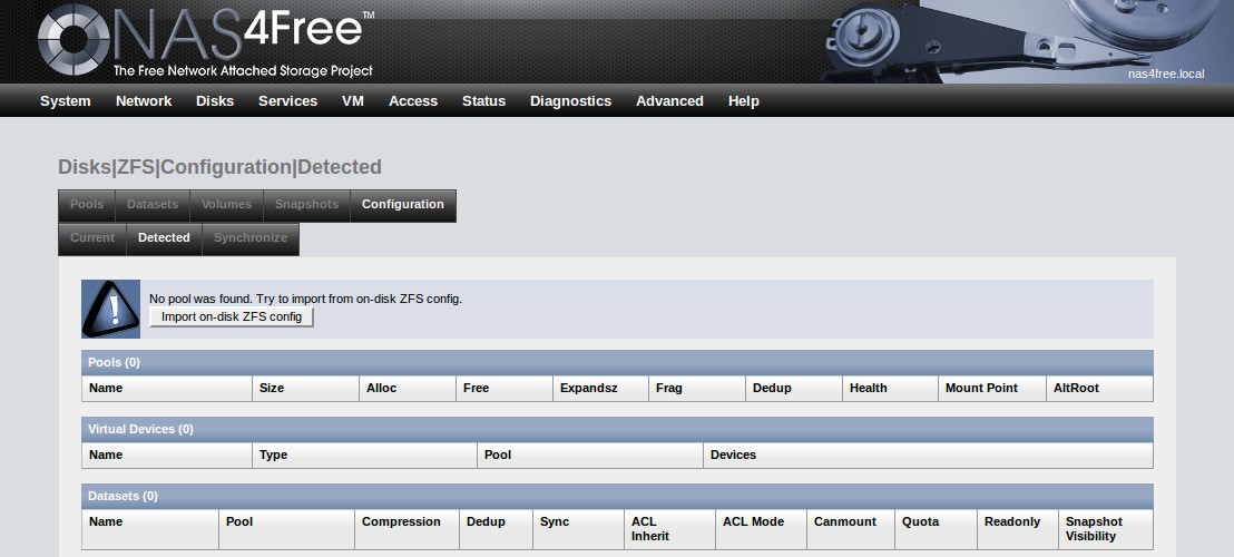 NAS4Free: Diskkonfigurationen wieder einlesen