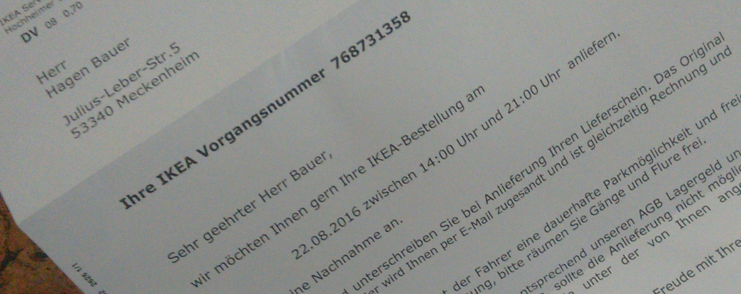 So bedauerlich das für den Fahrer wohl sein mag…. Ich kann euch gar nicht sagen wie wenig mich das interessiert. Ich habe ja keinen Vertrag mit der Spedition ABC um die Ecke die nur einen Fahrer hat sondern mit dem Weltkonzern Ikea.