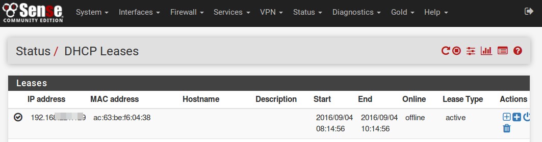 In der Konfiguration des Routers kann man an irgendeiner Stelle sehen welche IP Adresse im Netz vergeben worden sind. Die “neueste” sollte zu diesem Zeitpunkt der Dash Button sein. in der pfsense Firewall sieht das so aus.