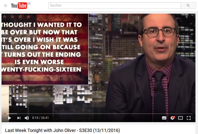 John Oliver bringt die Dramatik auf den Punkt. Ich hoffe er kann weitermachen.