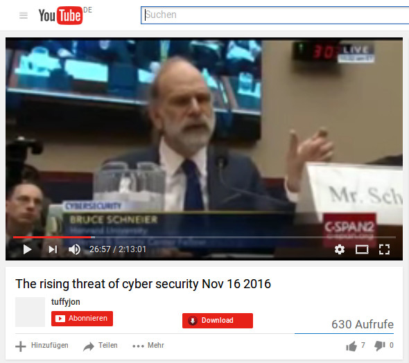 Ich habe mir vor allem die Aussagen von Bruce Schneier angeschaut den ich schon mehrfach zitiert haben. Um die Dramatik seiner Forderungen richtig einschätzen zu können ist es wichtig zu wissen das Bruce sich in der Vergangenheit sehr kritisch mit den Aktivitäten der NSA auseinander gesetzt hat und auch als einer der Fachleute erste Einblicke in die Snowden Dokumente hatte. Also wahrlich kein Falke des Überwachungsstaates.