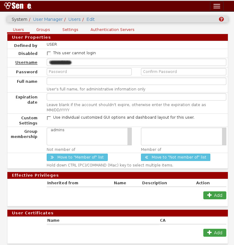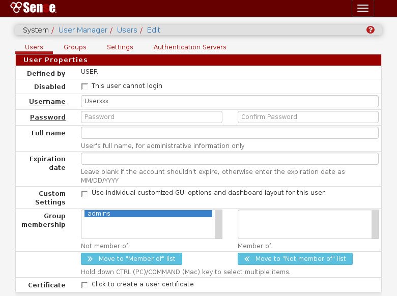 Zuerst erstellen wir einen neuen Benutzer in der pfsense