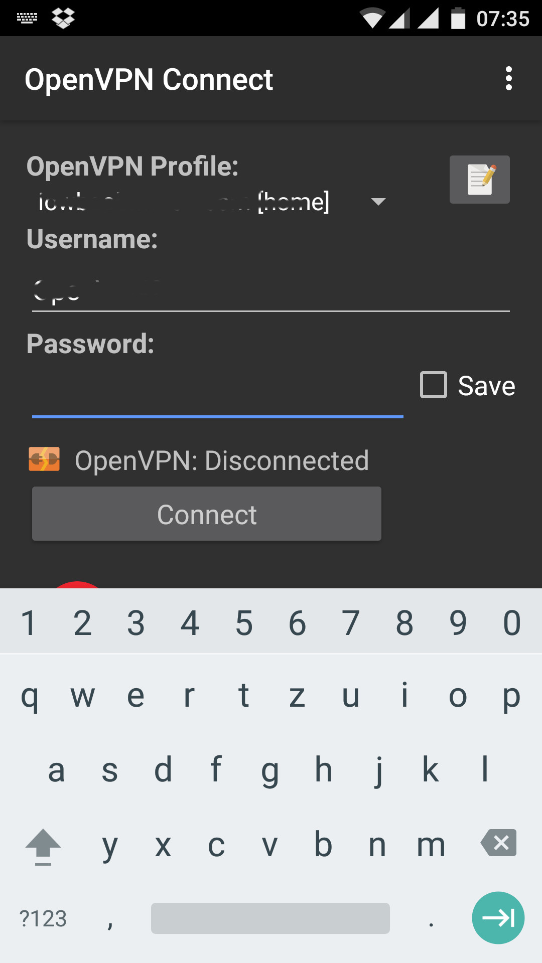 Auf dem Android Geräte musste ich dann die existierende Konfiguration löschen und noch mal neu importieren. Danach werde ich aufgefordert einen Nutzernamen und ein Kennwort zu vergeben. Und dann klappt es auch wieder mit dem Anmelden.