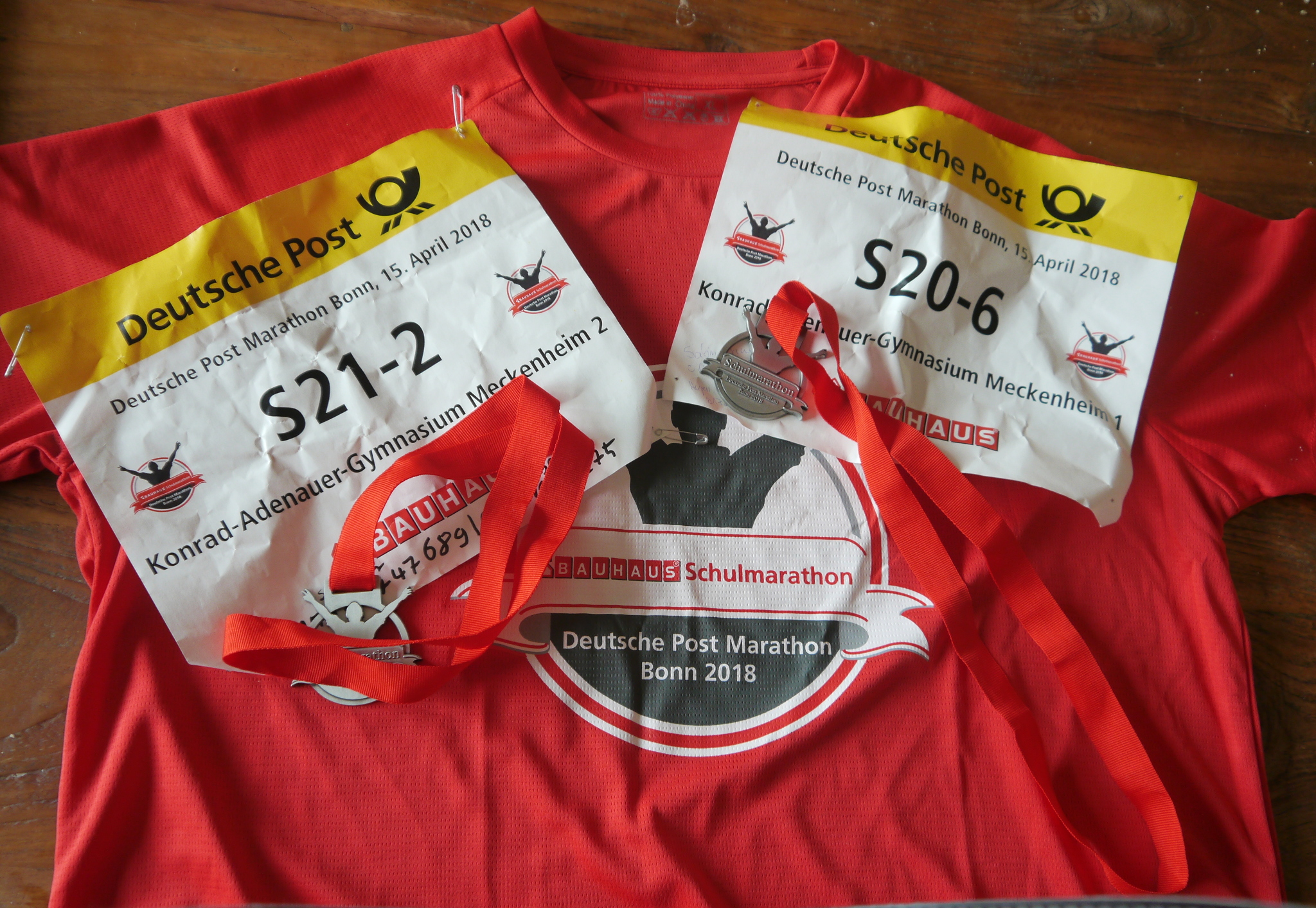Es ist wieder geschafft. Wieder haben Thomas Huth und ich 2 Teams erfolgreich, gesund und zufrieden auf dem heutigen Bonner Schulmarathon durchgebracht.