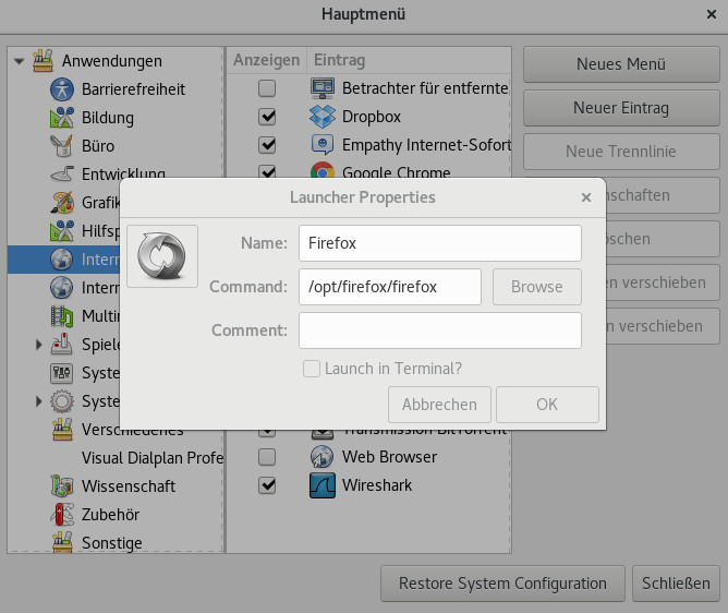 Debian: Programme zum Menu hinzufügen