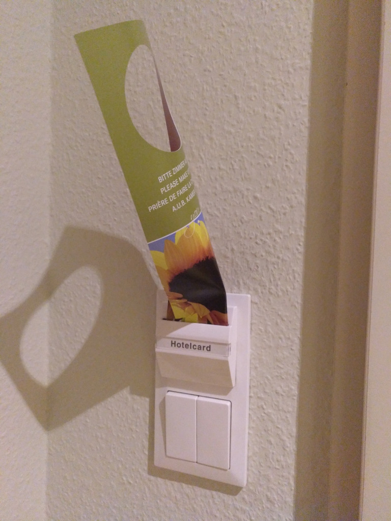 In vielen Hotels gibt es im Hotelzimmer einen “Schalter” der den Strom erst einschaltet wenn man seine Zimmerkarte eingeschoben hat.