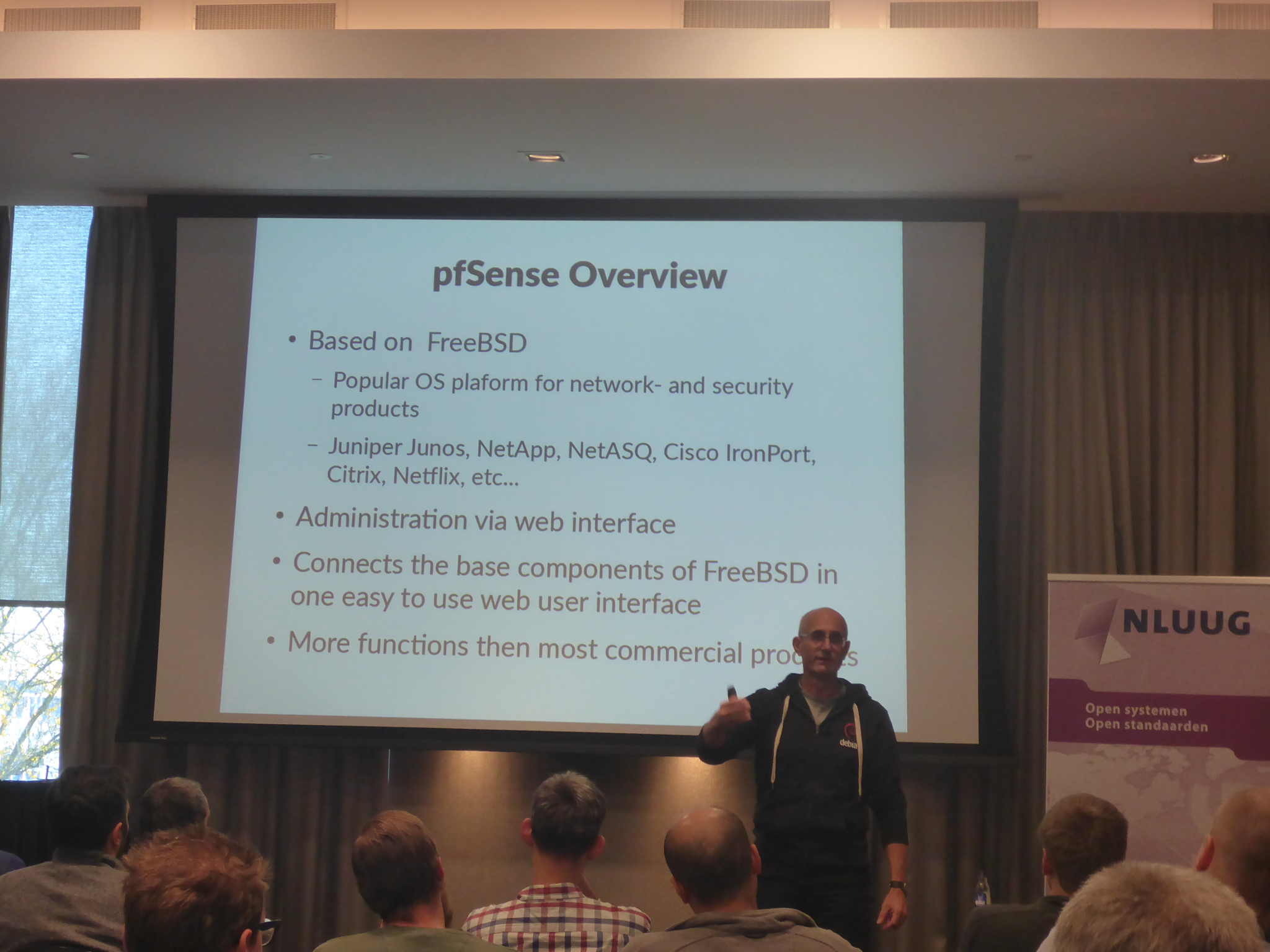 Aus einer Laune heraus hatte ich Mitte des Jahres einen Call For Papers der Niederländischen Opensource Anwendervereinigung beantwortet. Es sollte wieder um das Thema pfSense gehen. Zu meiner Überraschung wurde der Talk angenommen.