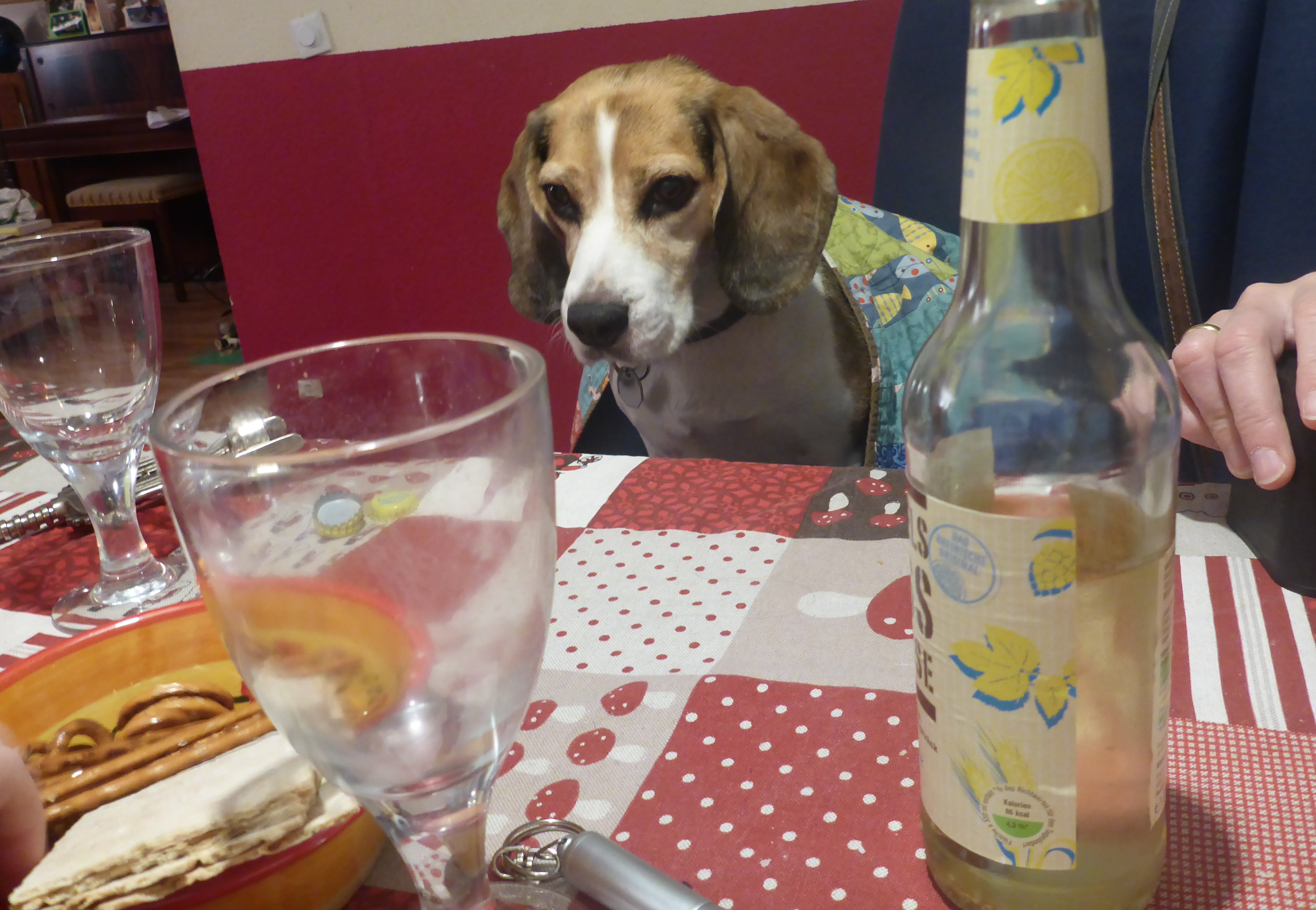 nur an Silvester darf unser völlig durchgeknallter armer Beagle mal “am Tisch” sitzen.