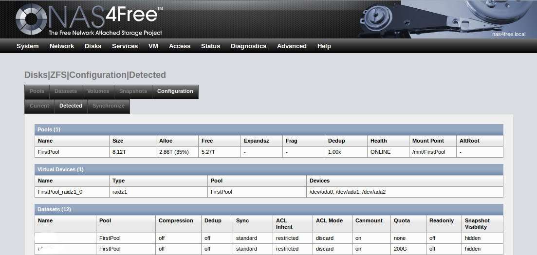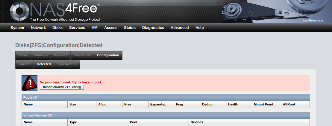 NAS4Free: Diskkonfigurationen wieder einlesen