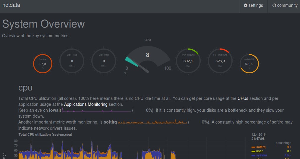 netdata scheint aktuell ein gutes Werkzeug zu sein um in Echtzeit Performance Daten zu visualisieren. Ich brauche das zwar recht selten aber wer weiß vielleicht kann man das ja mal brauchen.