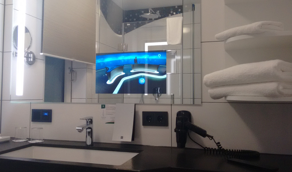 Reisen bildet ja und heute habe ich zum erstenmal einen Badezimmerspiegel mit integriertem Fernseher gesehen.