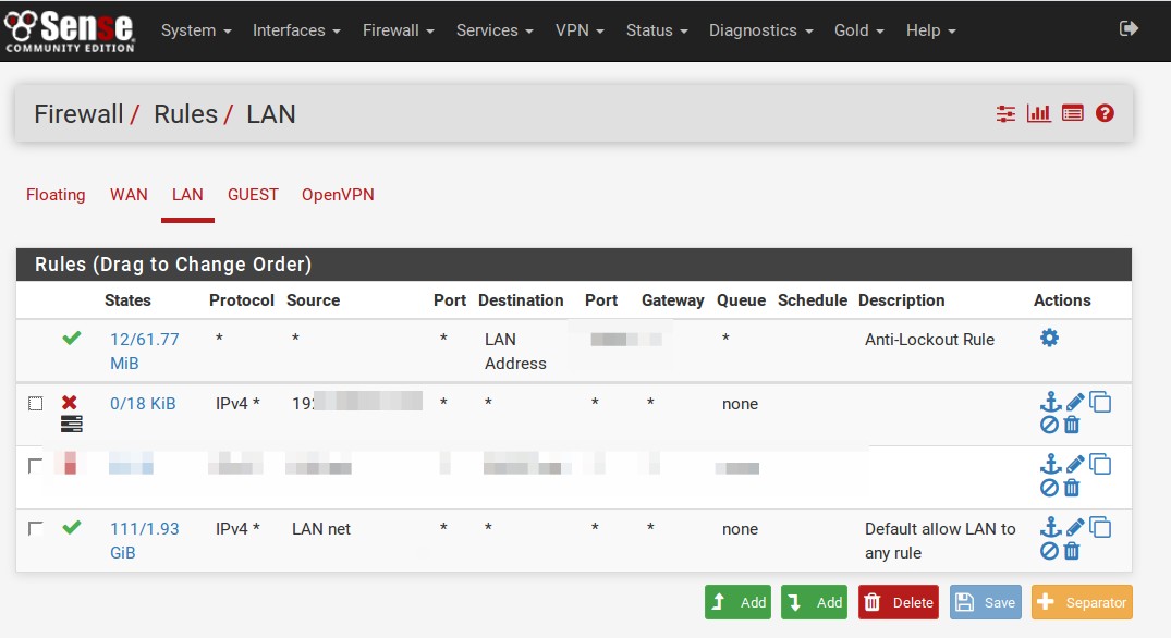 Wenn die Firewall einigermaßen leistungsfähig ist kann man auch “irgendwo” Regeln einstellen. An dieser Stelle habe ich der gerade herausgefundenen IP Adresse das Internet abgeklemmt.