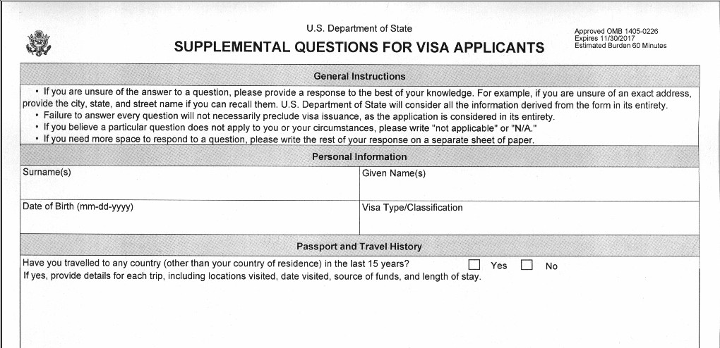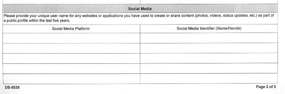 Jetzt werden für Visa Anträge in die USA schon alle Social Media Daten der letzten 5 Jahre angefordert.
