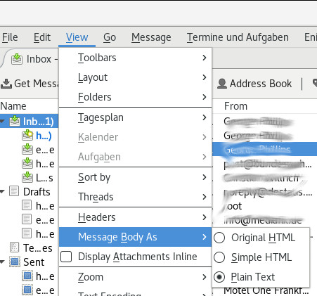 Thunderbird: Text only zeigt keine Attachments