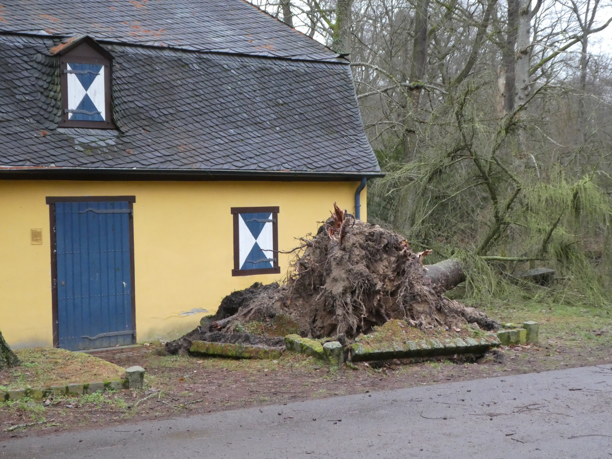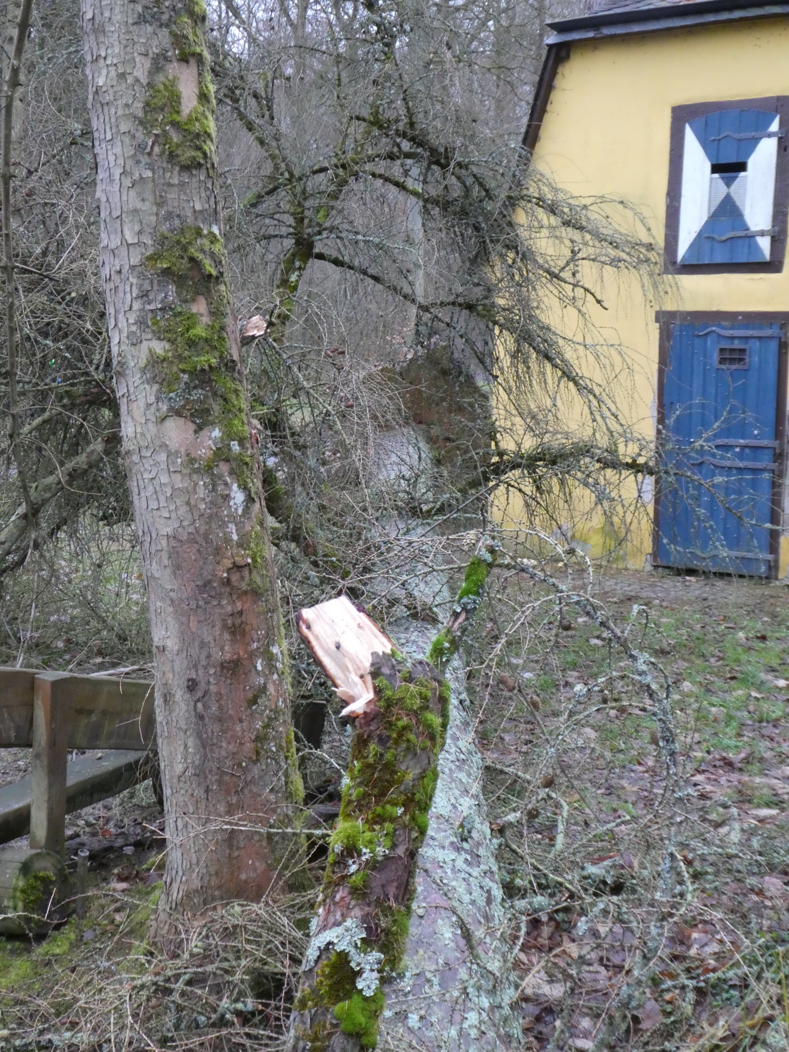 Beim Sturm letzte Woche wurde es um 50 cm von einer umfallenden Tanne verfehlt.