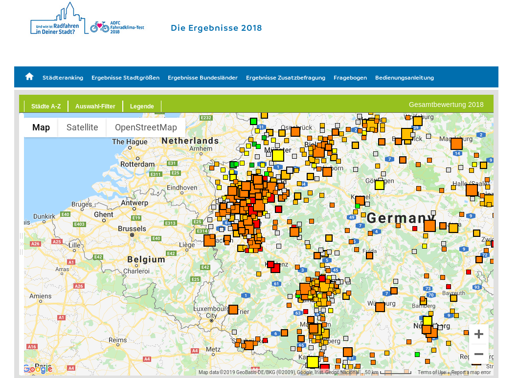 Der ADFC hat eine Umfrage durchgeführt und Bürger(innen) nach dem “Klima” für Fahrradfahrer befragt. Hier kann man nachsehen wie es um seine Stadt bestellt ist (wenn genug Antworten kamen.) Meine Heimatstadt Meckenheim ist im Ranking der vergleichbaren Städte auf Platz 2 von 82 :-)
