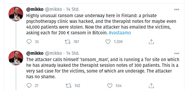 Wenn wir das nächste mal Firmenvertreter mit Ihrem Gejammer über die DSGVO hören, dann können wir ja einfach mal fragen wie die sich als Privatmensch fühlen wenn Ihre privaten intimen Daten gehackt werden. So geschieht es nämlich gerade Patienten der privaten finnischen Psychotherapieklinik Vastamo
