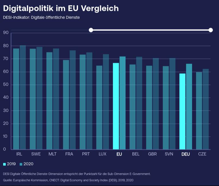 Dort kann man dann (hoffentlich messbaren) Fortschritt zu den Digitalinitiativen sehen. Mal sehen was dort rauskommt. Es gibt auf jeden Fall viel Potential bei den öffentlichen Diensten wo nur noch Tschechien schlechter als Deutschland da steht.