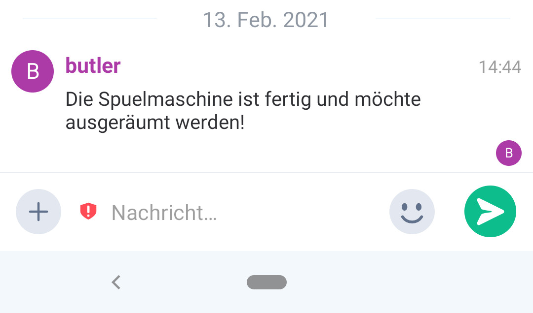 Ich möchte ein Nachricht über Matrix bekommen um verschiedene Personen im Haushalt zu beauftragen die Wäsche von der Waschmaschine in den Trockner zu räumen oder die Spülmaschine auszuräumen. Die Anbindung von Homeassinstant an meinen Matrixserver habe ich hier beschrieben