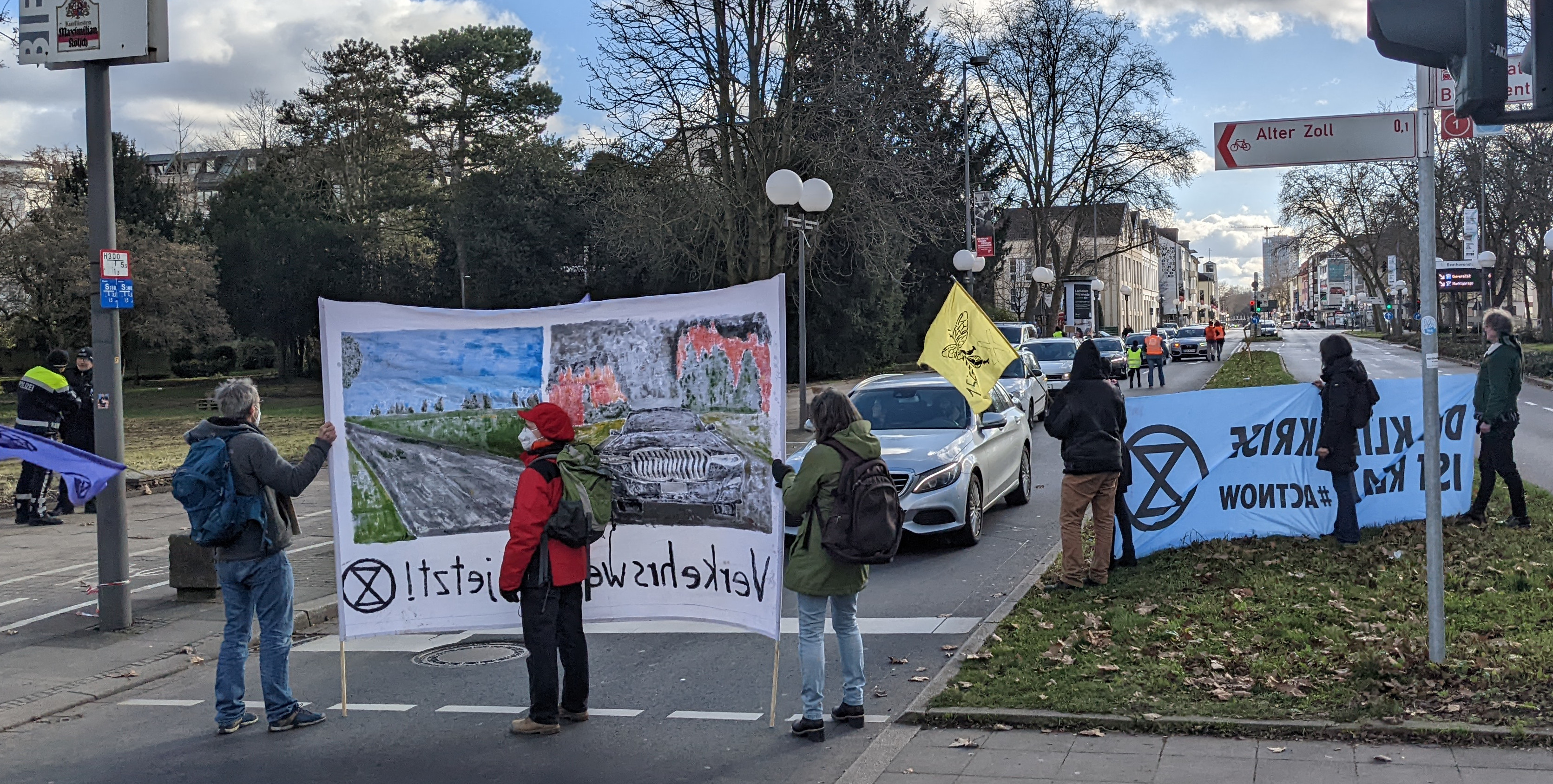 Ein Klimaschutz Awareness Enablement Wieder in Bonn auf der B9. Heute bei bestem Februarwetter und die Gruppe wird immer größer. 05.02.2022 | Kategorie / Demonstration / XR /