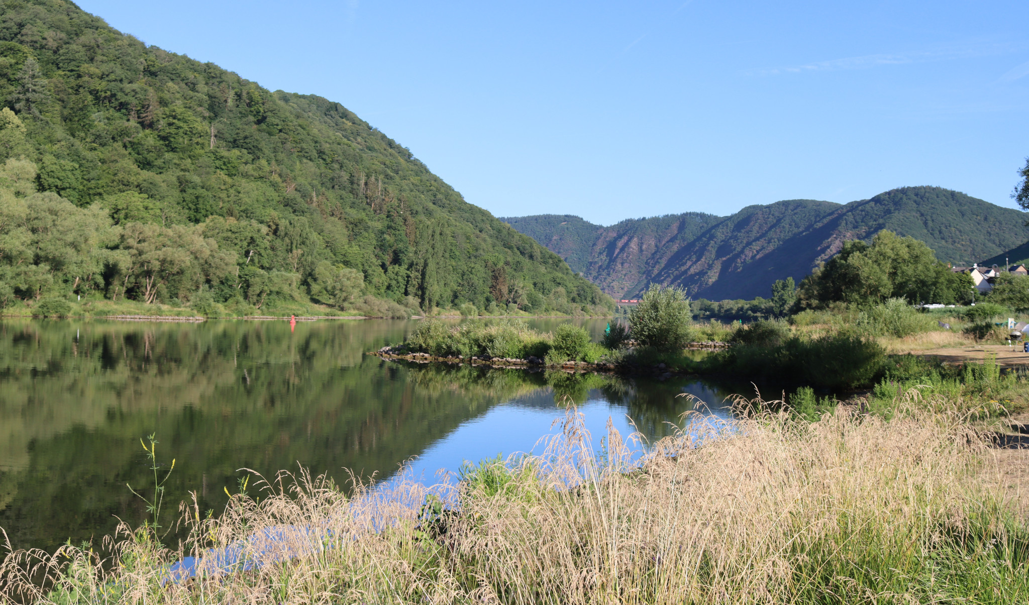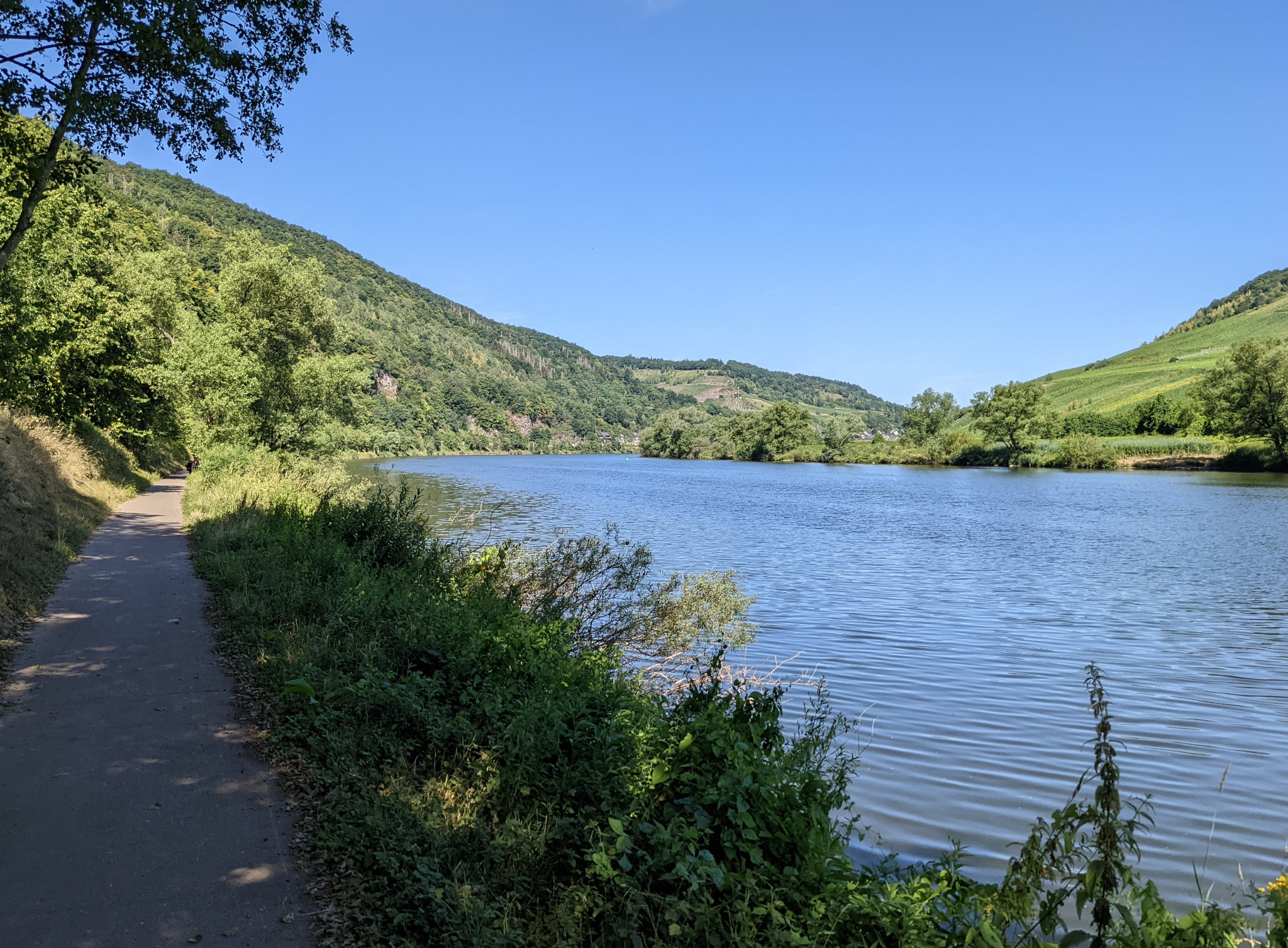 Von uns zu Hause ging es am Freitag ca 60 km nach Koblenz auf den Campingplatz gegenüber vom deutschen Eck wo die Mosel in den Rhein mündet. Die nächsten 2 Tage dann jeweils knapp 70 km mit reichlich Zeit für Pausen. Eigentlich war der Plan noch etwas weiter zu fahren aber die angekündigten 36 Grad haben uns doch zu einer kleinen Verkürzung bewogen.